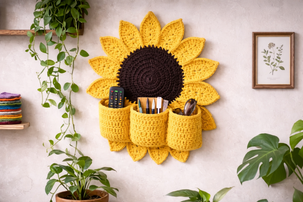 The Crocheted Wall Organizer with Sunflower – Pattern is a charming and practical project that blends creativity with functionality, making