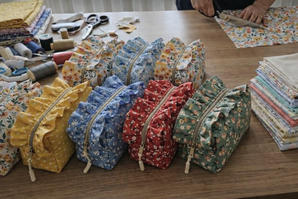 The Small bag with ruffle and zipper – Quilt Pattern is a charming and practical sewing project that combines creativity,