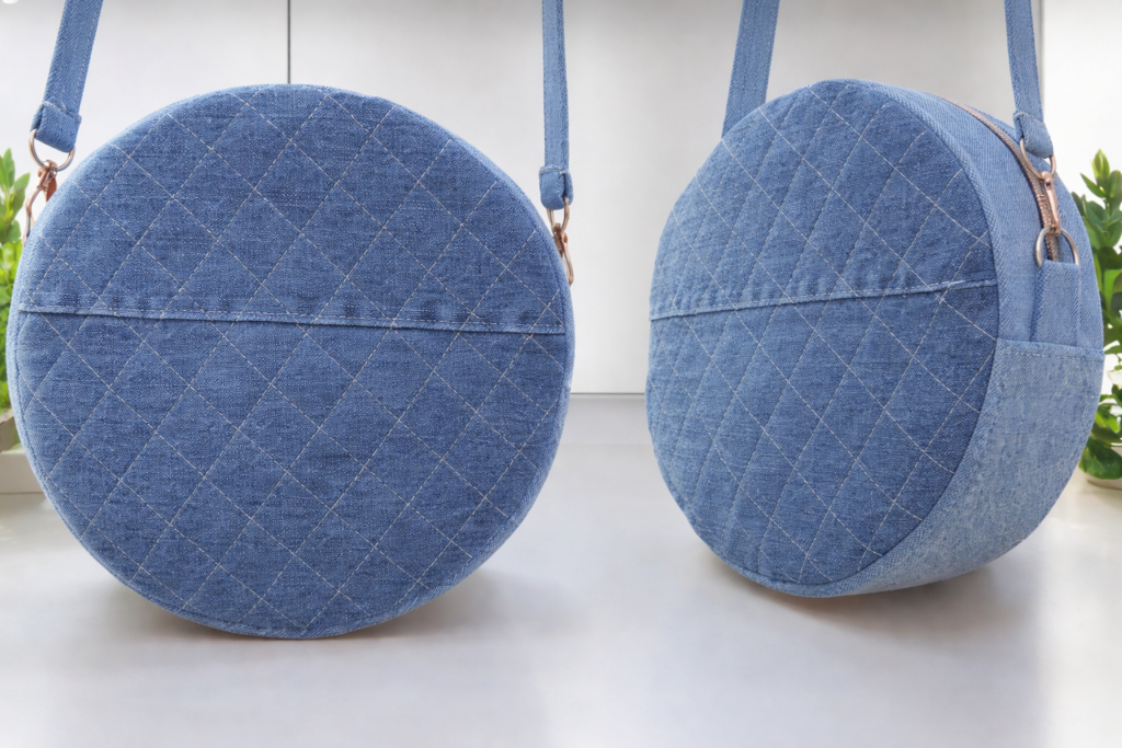 Round bag made from old jeans – tutorial – Quilt Pattern is a creative and sustainable project that transforms unused