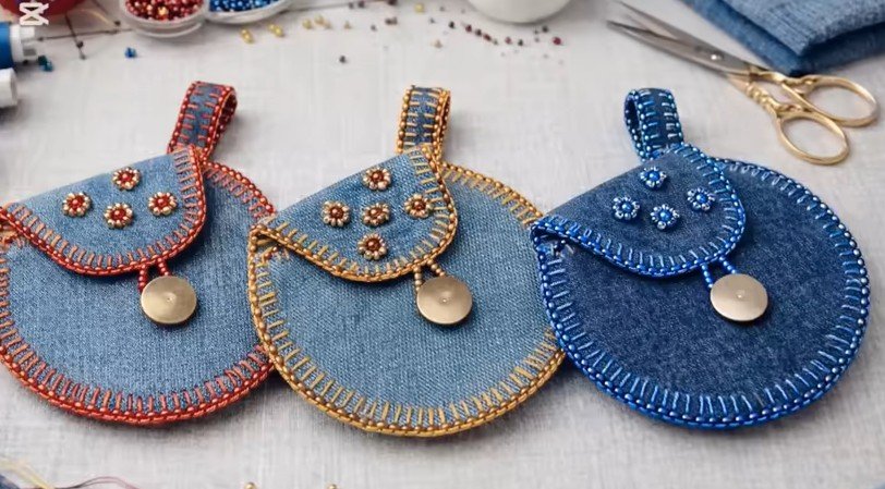 Mini wallet made from recycled denim and embroidered beads – Quilt Pattern is a creative project that combines sustainability, craftsmanship,
