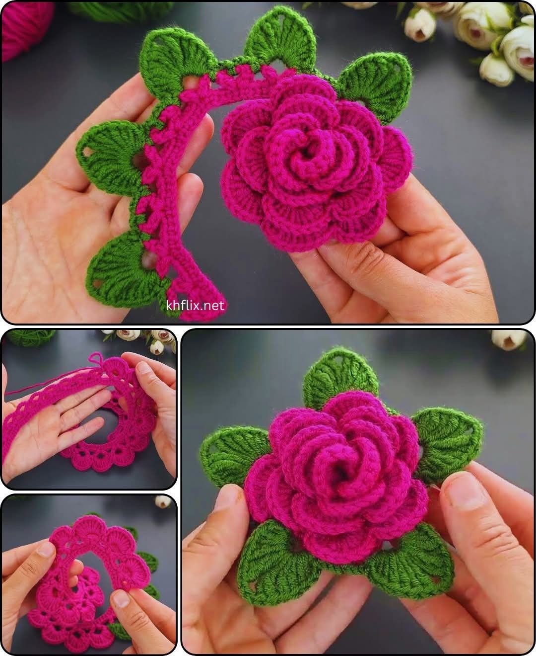 The beauty of crocheting a 3D rose flower lies in its versatility. You can use these flowers in various projects, from fashion accessories to home decor, giving your items a personalized, handmade touch.