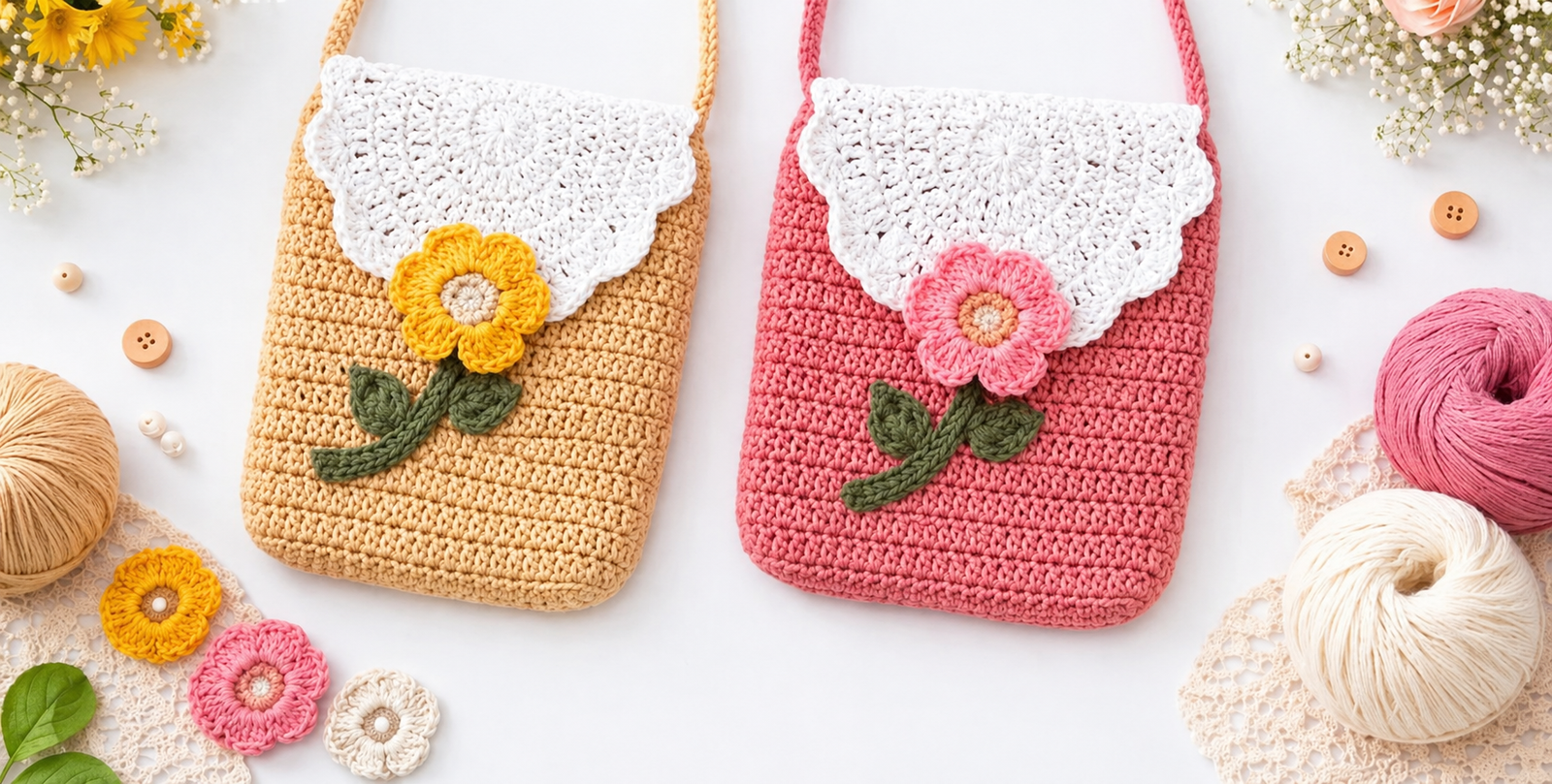 Another important aspect of the Crocheted flower bag – Pattern is yarn selection. Choosing the right yarn affects not only the appearance but also the durability of your bag. Cotton yarn is often preferred because it provides structure and strength, making the bag suitable for daily use while maintaining the shape of the flower patterns.