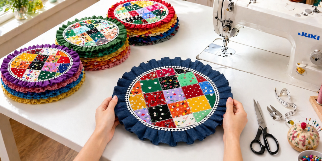 Scraps and old jeans plate holder Fabric Pattern is a creative and sustainable sewing project that transforms leftover materials into