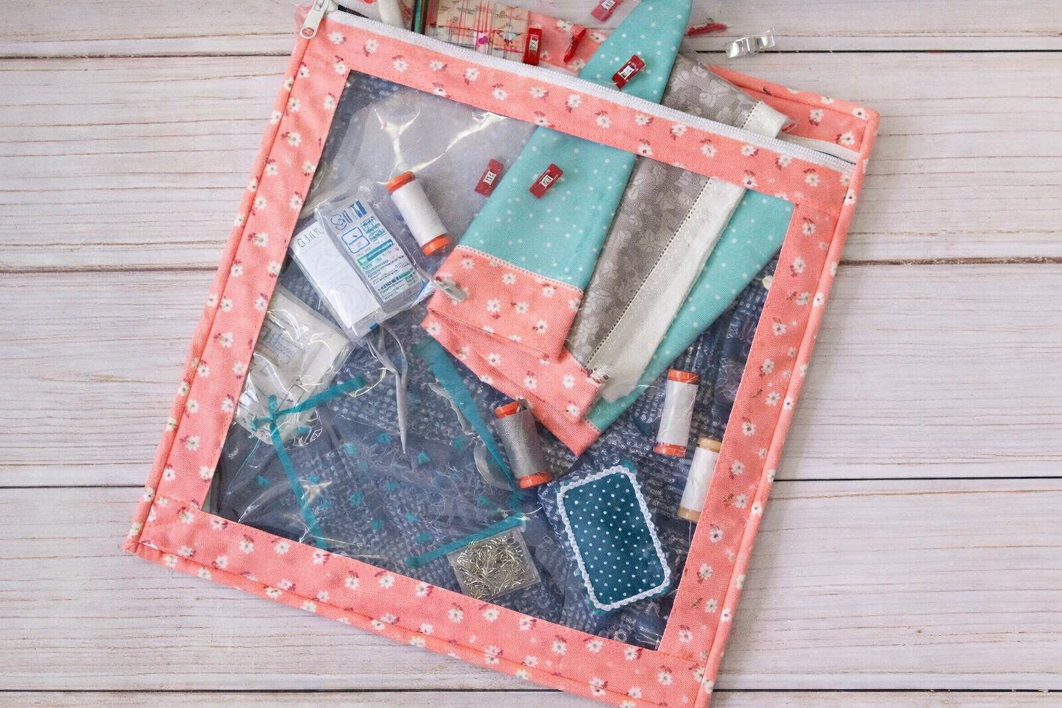It is a sewing pattern designed to create a transparent, zippered bag for organizing unfinished quilting or sewing projects.