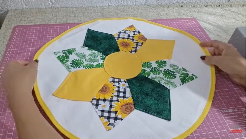Another well-loved style is the “crazy quilt” approach. In this method, irregular fabric pieces are sewn together in a freeform arrangement. The result is a dynamic and artistic centerpiece that looks almost like a fabric mosaic.