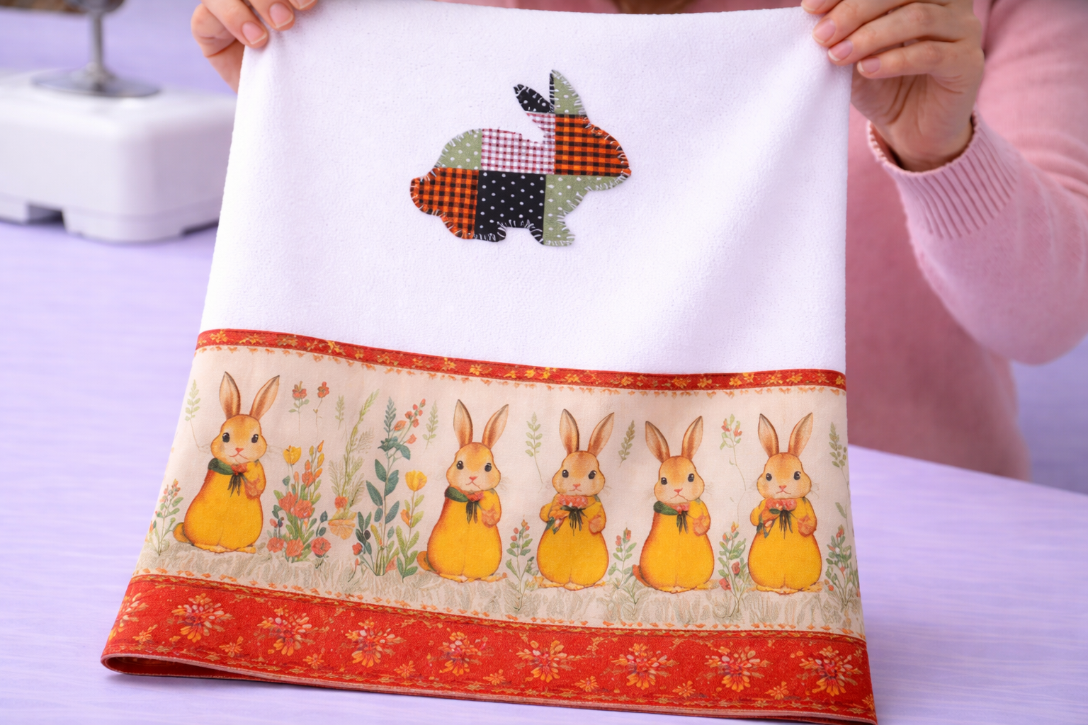 The Dish towel with rabbit motif – Quilt Pattern is suitable for beginners and intermediate crafters. Basic sewing skills are enough to get started, while more advanced techniques can be added for customization.