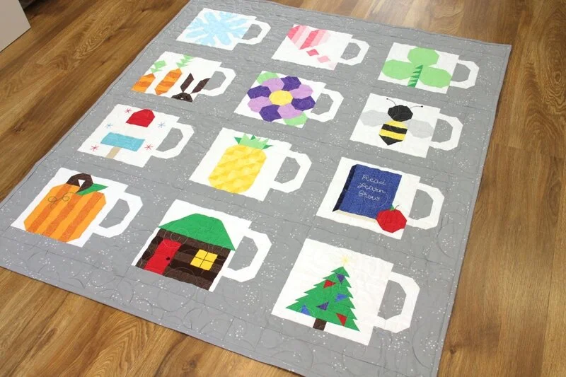 It’s a 12-month quilting project where participants create a different mug-themed block each month, combining them into a full quilt by year’s end.