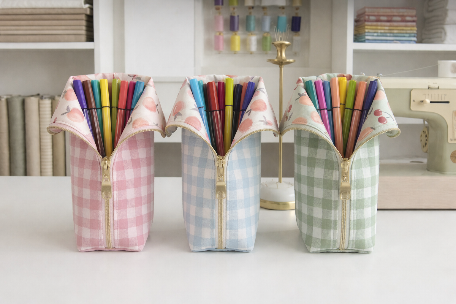 Lastly, a zipper is essential for functionality. Choosing a zipper that complements the fabric adds a professional touch to the Pencil case with checkered – Quilt Pattern, making it both stylish and practical.